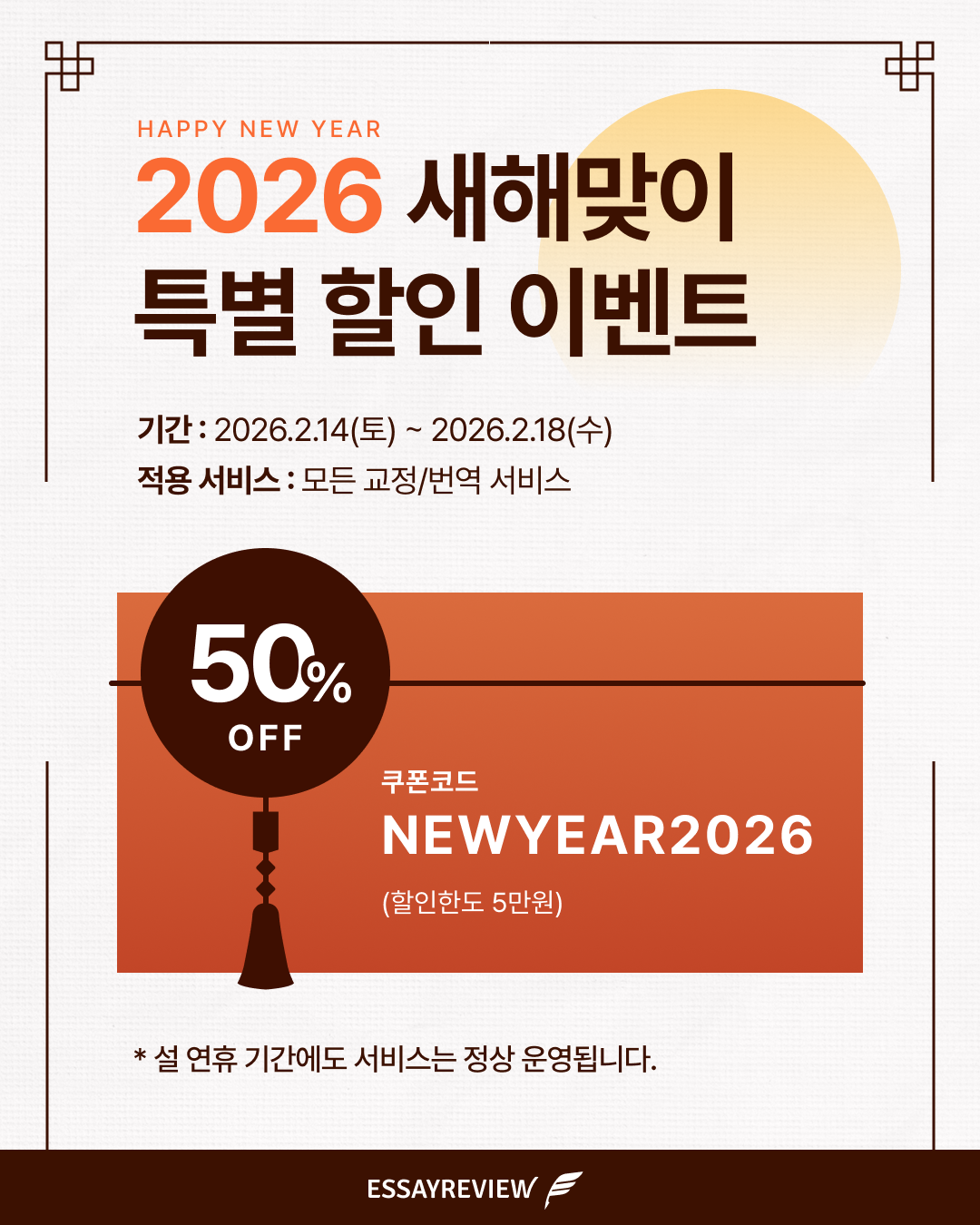 에세이리뷰는 2026 설 연휴에도 정상 운영합니다.